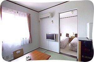 挑高12張榻榻米寬的和室及雙人房的室内有著說不出的舒暢感。