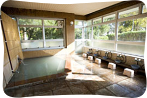 浴池有 2 種形式,大浴池可供 7、8 名一起使用。下雨時移動很麻煩,或是有小孩的話,對於喜歡包場的客人是最適合了。請大家務必使用。到達及出發時請在大廳輕鬆休息。