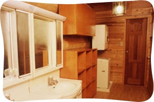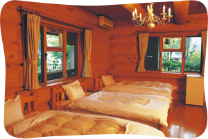 感到宛如北美別墅的小木屋,其中從加拿大運來的大圓木散發出厚重感,室内由和室1間、洋室3間所構成,是具有放鬆氣氛的建築物。